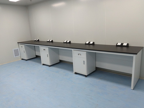 3.活動組織背板:中間臺中部地區(柜門后面)為產品隔層,儲物柜后面有可移動式檔板,用以隱形從地面磚留線或墻頂吊頂板導入功能性柱到儀器設備桌面的電、氣壓縮空氣管,可在要用一切工貝的情況下進入返修工作區。